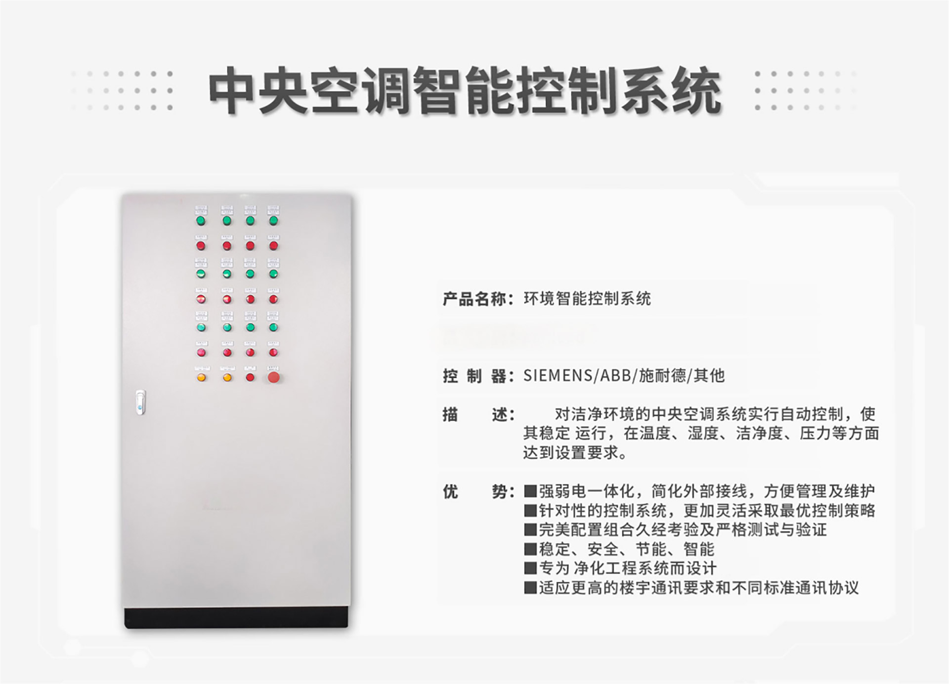 浩淼中央空调控制系统是浩淼自主研发、拥有多项专利技术的核心产品。系统采用强弱电一体化,简化了外部接线,更方便管理与维护。同时能适配不同标准的通讯协议,根据运行情况,灵活提供最优控制策略。拥有稳定、安全、节能、智能的产品特性。